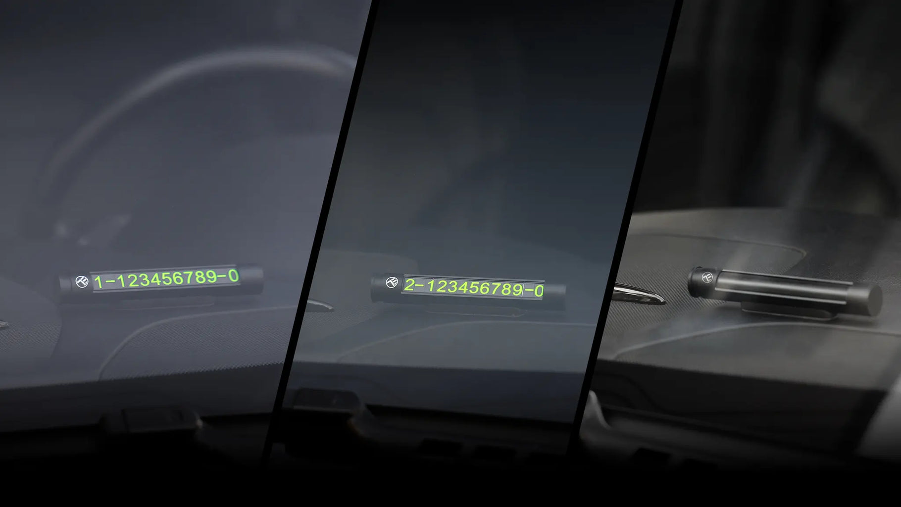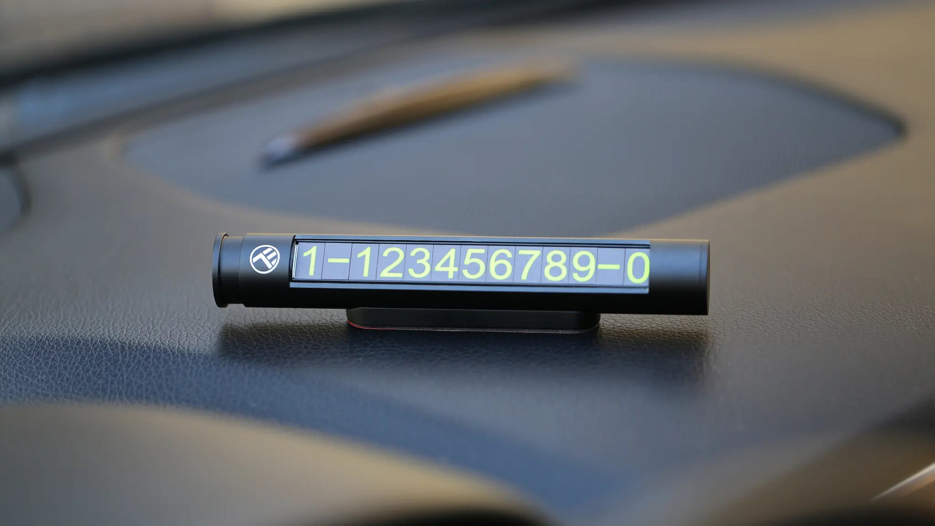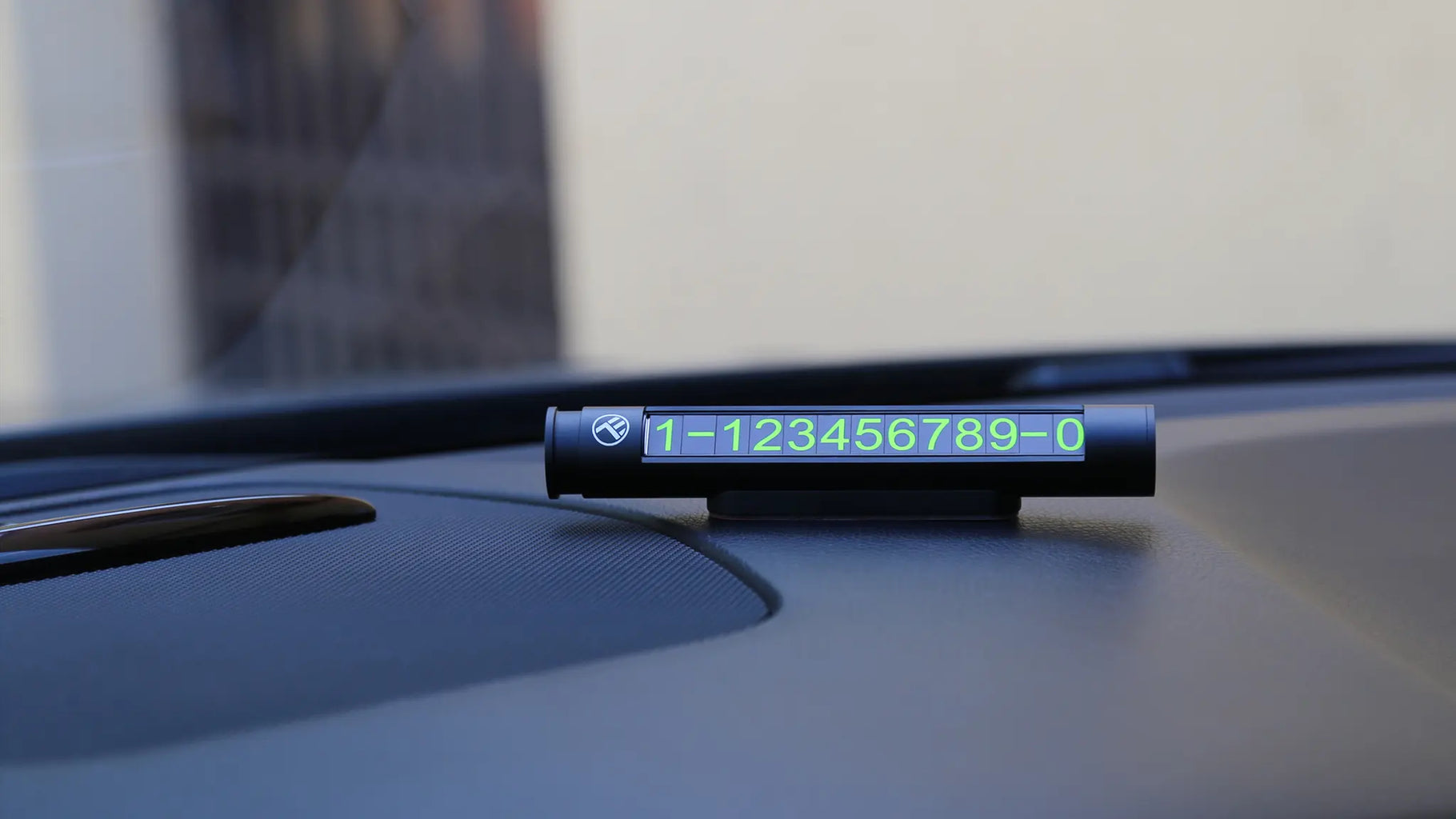 The parking card is easy to fix on your car's dashboard thanks to its adhesive pad. It is made of high-quality metal, with structural stability and high-temperature resistance. In addition, thanks to its design, the support fits perfectly in your car and does not obstruct visibility. The magnetic numbers have a phosphorescent color, so you won't have to worry about night-time visibility. When you don't want your number to be exposed, with a simple one slide switch, you can hide your phone number.