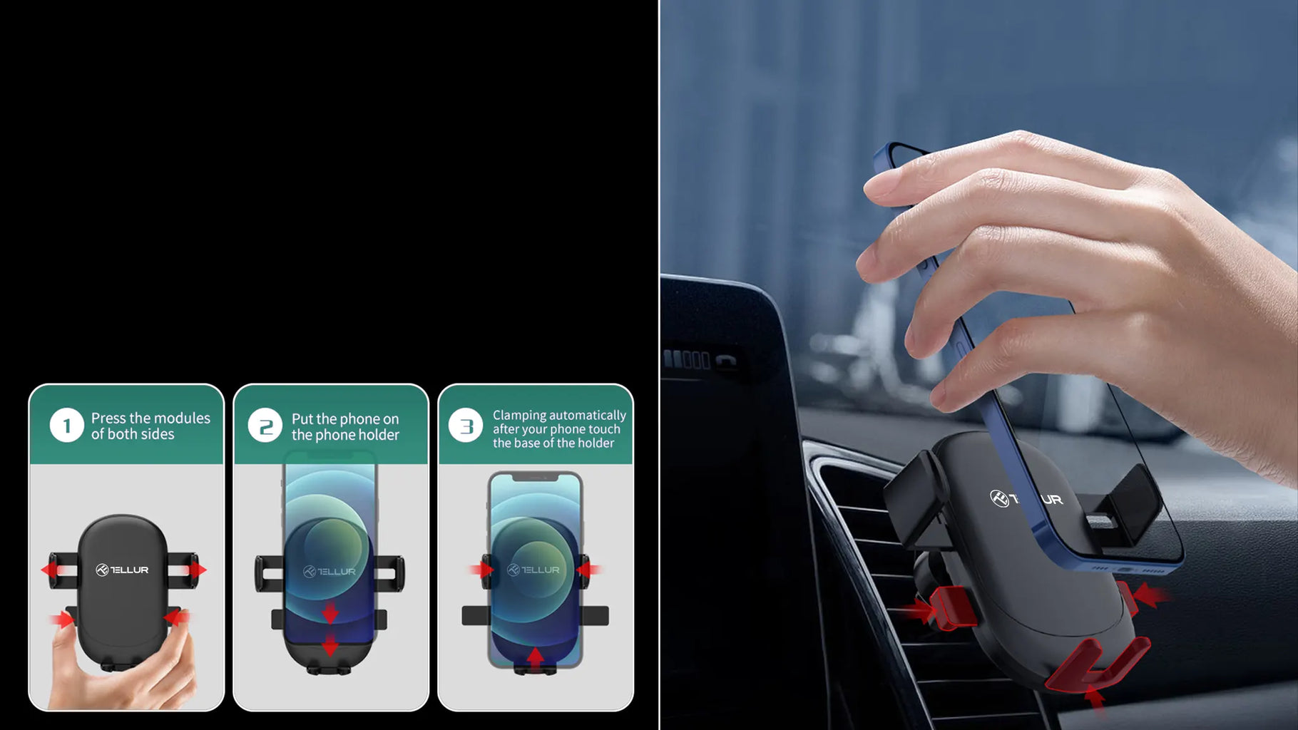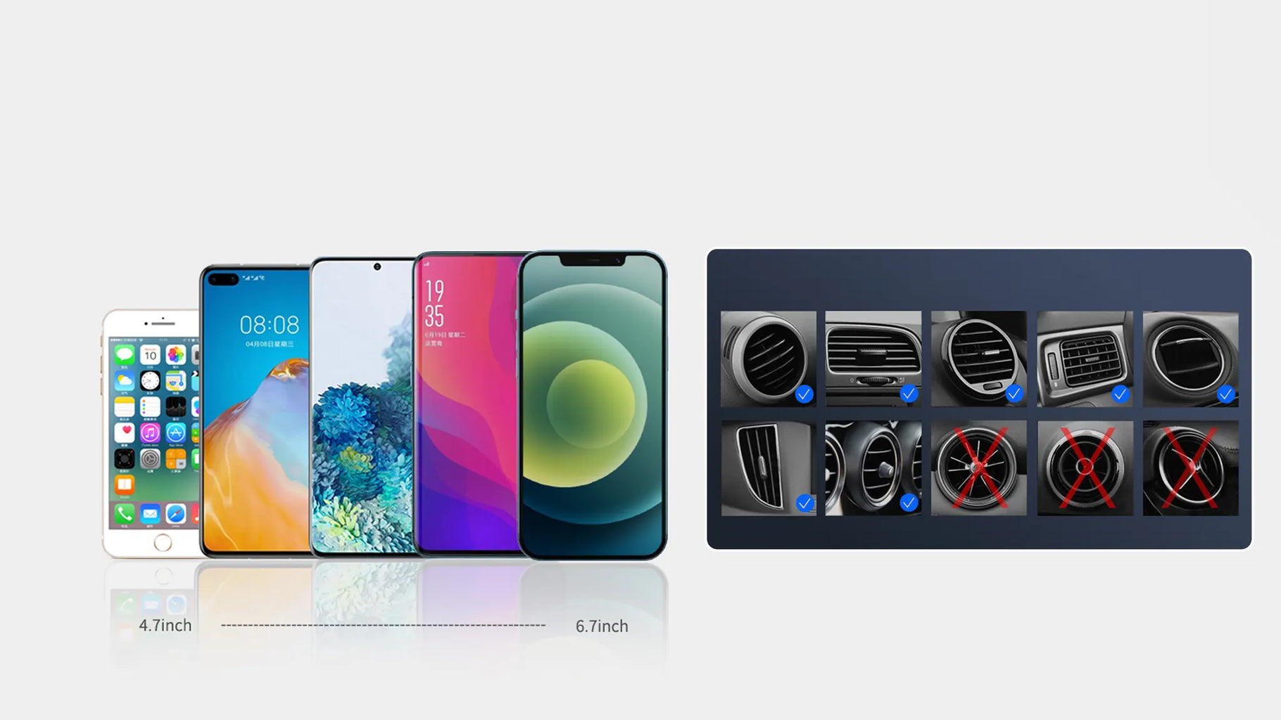 It is compatible with all 4.7 - 6.7 inches smartphones and can be easily mounted in most car air vents. Thanks to its support design, the CMH10 car phone holder makes it easy for you to place and remove your phone in just a few seconds whenever you need it, using only one hand. But that doesn't mean that a little bump on the road can represent a threat to your phone. On the contrary, the CMH10 has a firm grip that will securely hold your phone in place even on bumpy roads. Need to recharge your phone while driving? No worries! The CMH10 is specially designed to offer easy access to the charging port of your smartphone for any cable. Moreover, the holder is adjustable, offering the option to rotate it 360° in order to get the best viewing angle.