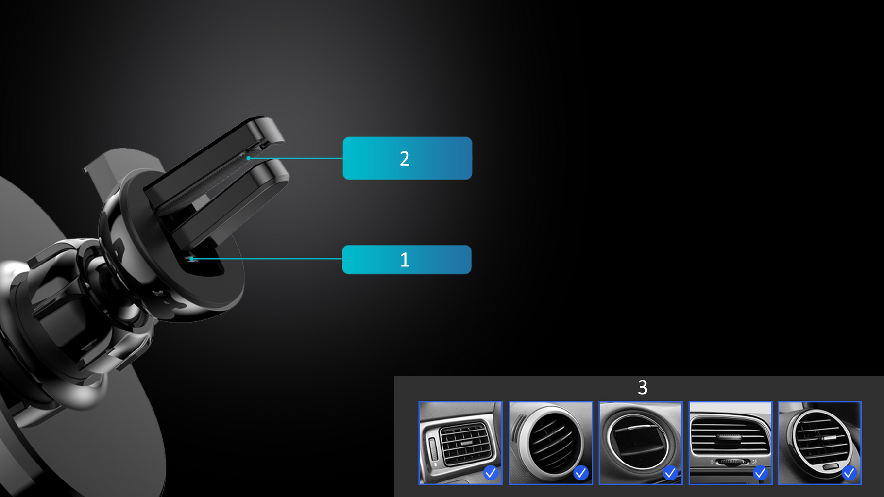 No buttons to push, or metal plates stuck to the back of your phone. Simply slide your phone into the gripping arms of the holder and let the weight of your phone pull it down and lock it into place. Thanks to the gravity design, the CMH20 car phone holder makes it easy for you to place and remove your phone in just a few seconds whenever you need it, using only one hand. But that doesn't mean that a little bump on the road can represent a threat to your phone. On the contrary, the CMH20 has a firm grip that will securely hold your phone in place even on bumpy roads. It is compatible with all 4.7 - 6.7 inches smartphones and can be easily mounted in most car air vents. Moreover, you can use the included 3M adhesive to fix it on the dashboard. Need to recharge your phone while driving? No worries! The CMH20 is specially designed to offer easy access to the charging port of your smartphone for any cable. The holder is adjustable, offering the option to rotate it 360° in order to get the best viewing angle.
