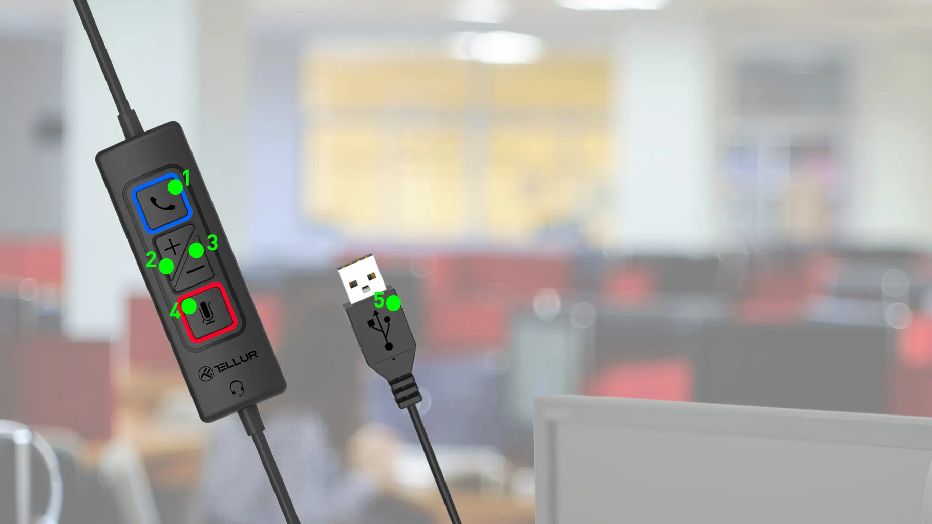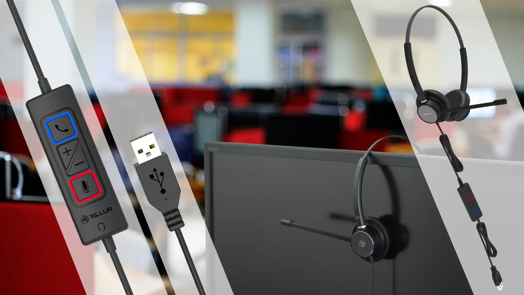 Easy to use, it can be connected to any device with USB port or Type C. The headphones have a rotation of 11° and the microphone is adjustable up to 315°. Synthetic leather and low weight offer increased comfort. Built-in remote control allows volume control +/-, answering/closing calls and mute. The microphone benefits from ambient noise cancelling technology.